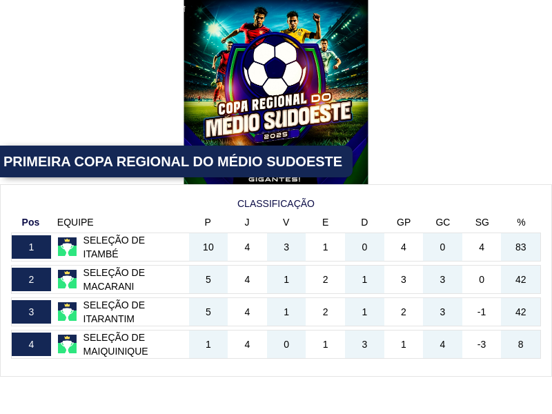 A SELEÇÃO DE ITAMBÉ VAI ATÉ A CIDADE DE MAIQUINIQUE, TENTAR CONFIRMAR A BOA CAMPANHA E CONSEGUIR MAIS UM RESULTADO POSITIVO E CONSOLIDAR LIDERANÇA DA COPA REGIONAL.