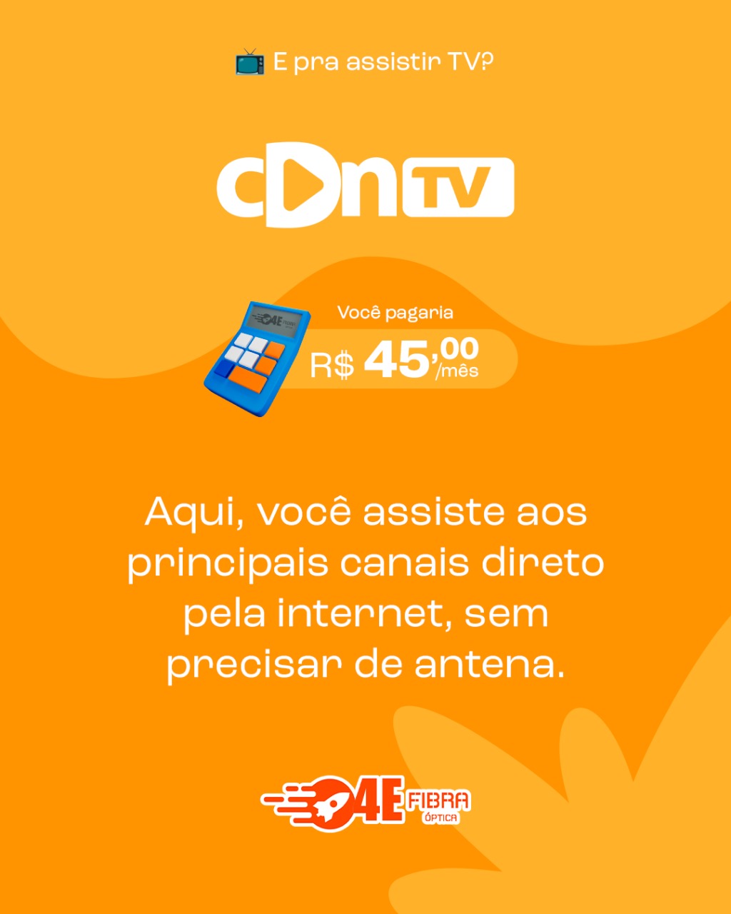 CLIENTE 4E FIBRA TAMBÉM ASSISTE AOS PRINCIPAIS CANAIS PELA CDN TV, DIRETO PELA INTERNET.