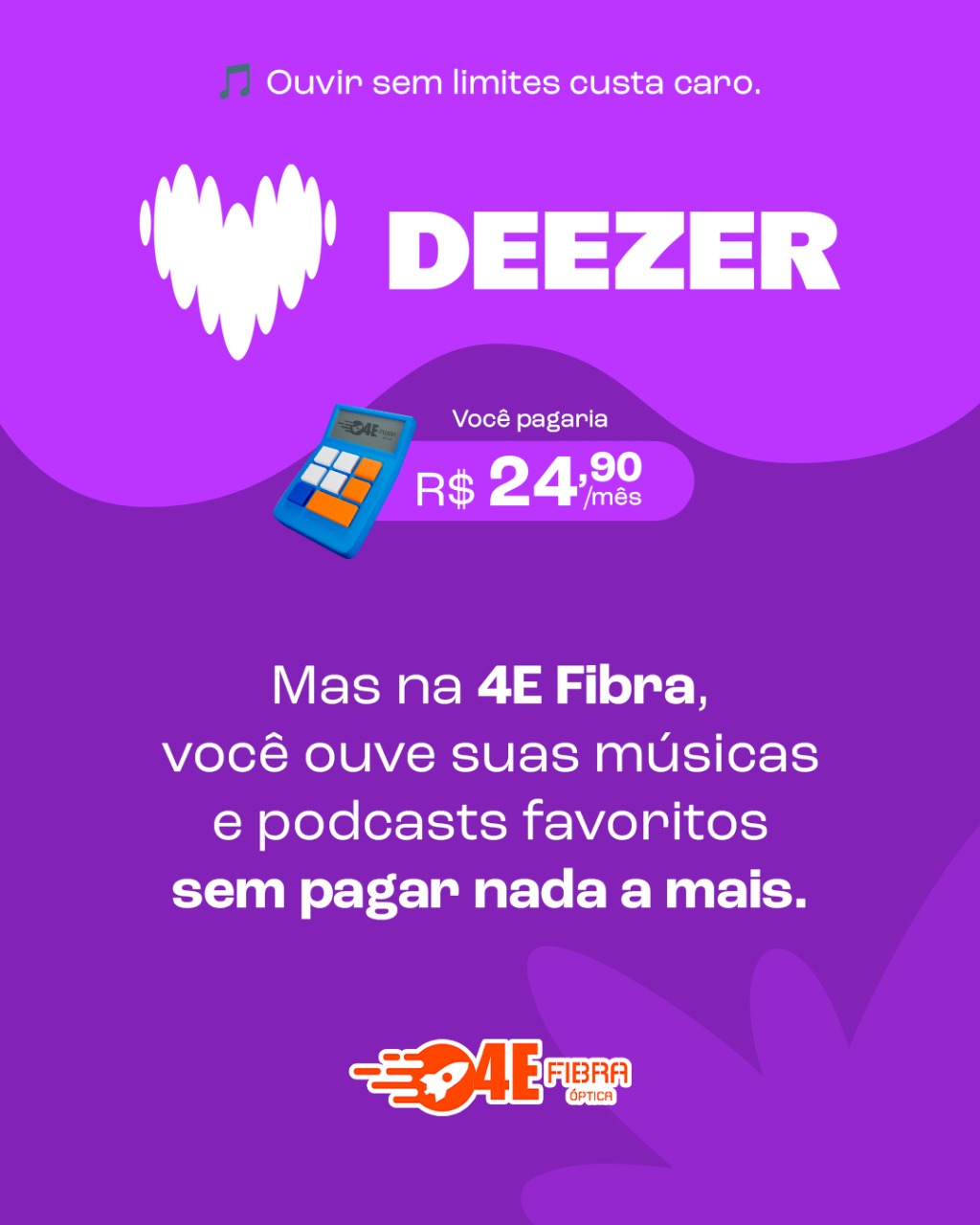 NA 4E FIBRA, VOCÊ OUVE SUAS MÚSICAS E PODCAST, SEM NENHUM CUSTO A MAIS !!!