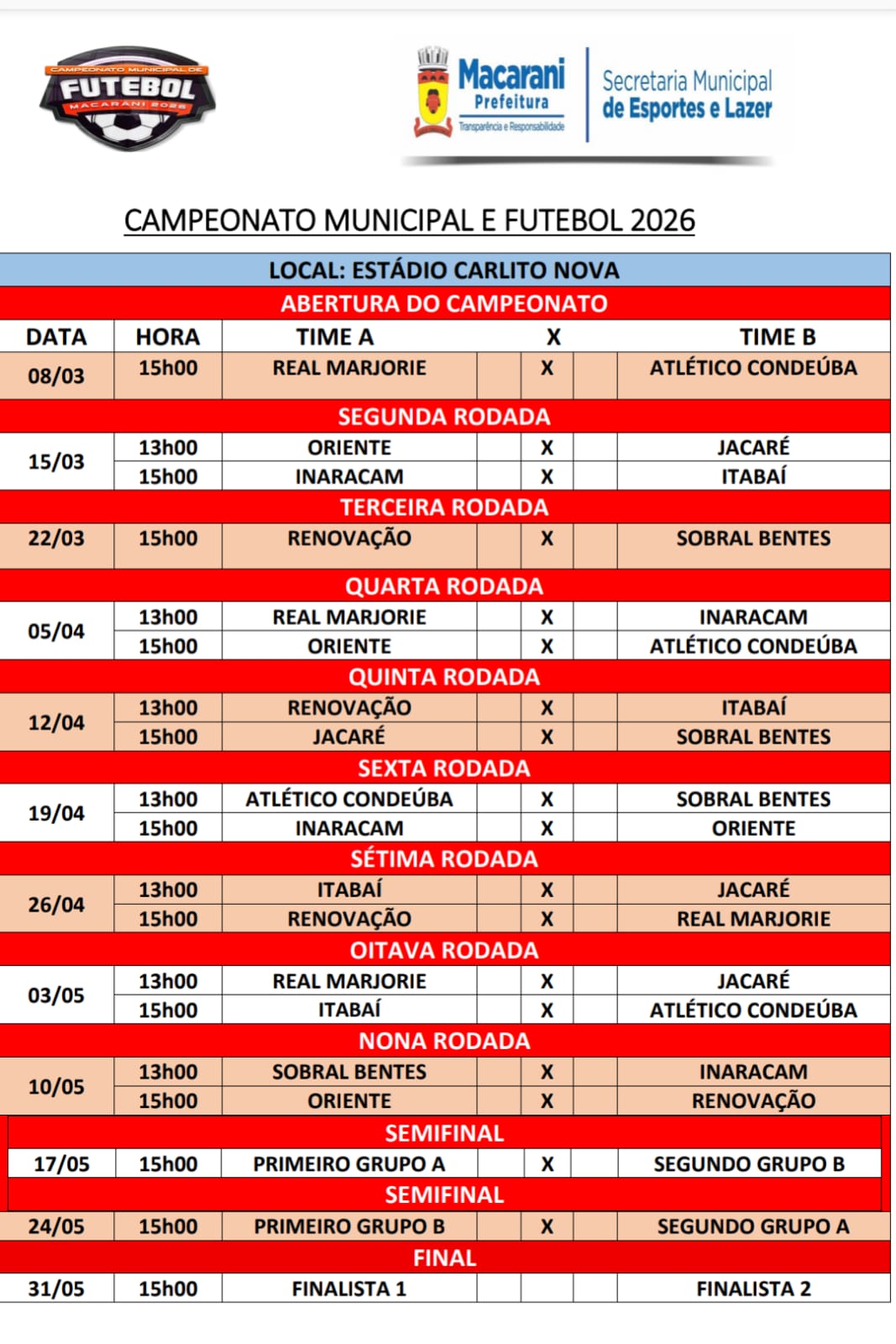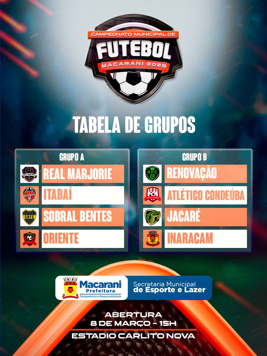NESTE DOMINGO (08/03), ACONTECEU A ABERTURA DO CAMPEONATO MUNICIPAL DE FUTEBOL DE MACARANI 2026